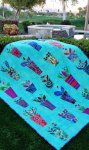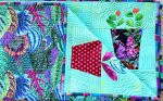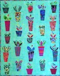 Herb garden hand applique on grunge background featuring Kaffe Fassett Collective fabrics front and backing.
