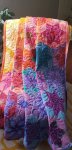 Kaleidoscope Stars measures 60" x 70" and is quilted with Curly Feathers digital design.