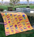 Notting Hill is 60 x 75. Hand applique on Grunge background. Custom quilted.